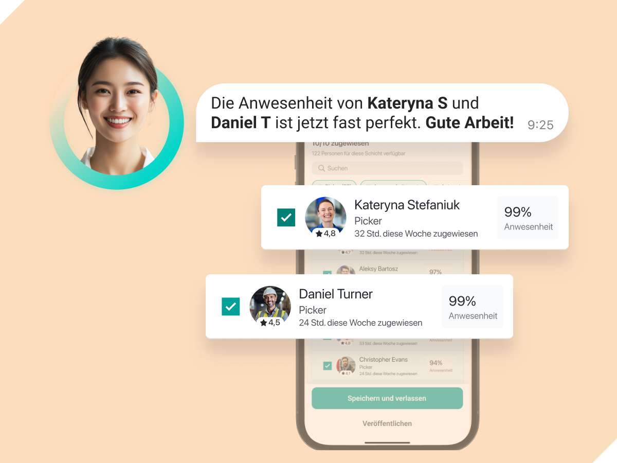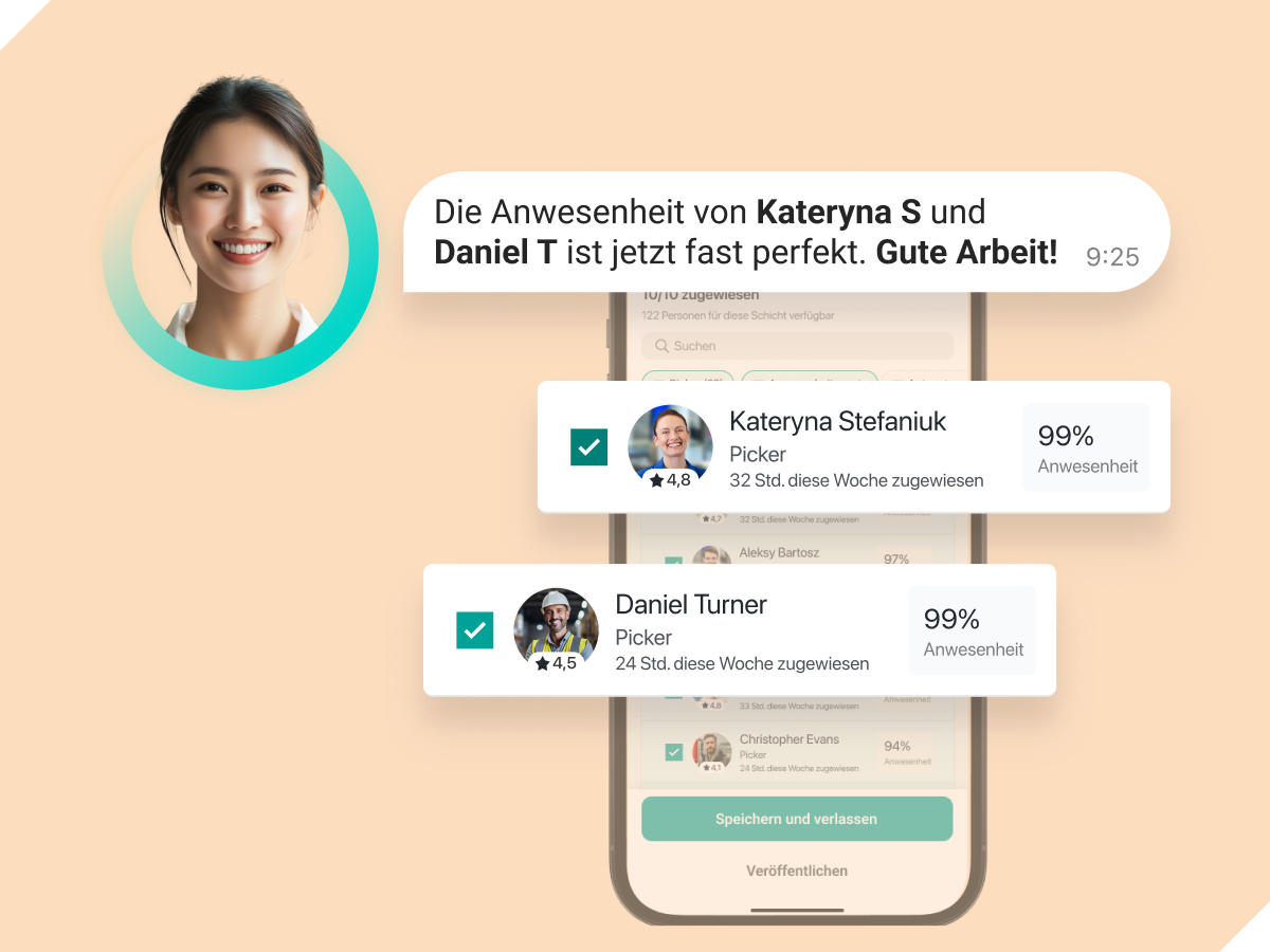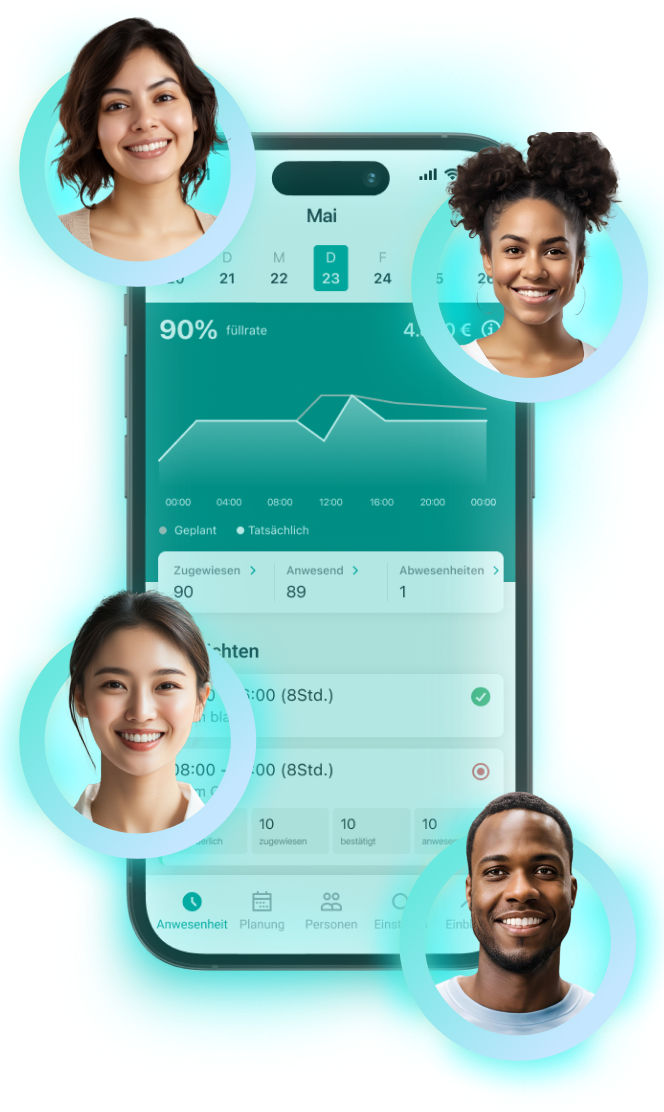Mit dem AI-Team von Job&Talent bringen wir Intelligenz und Automatisierung in jede Phase des Personalmanagements – von schnellerer Einstellung und smarter Planung bis zu höherer Anwesenheit und Leistung. Unsere AI-Agenten helfen Unternehmen, effizient zu skalieren, Kosten zu senken und neue Produktivitätsniveaus zu erreichen.