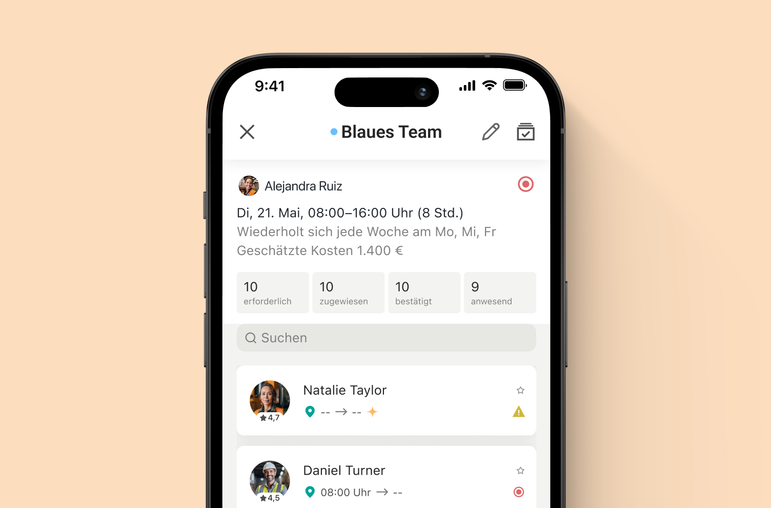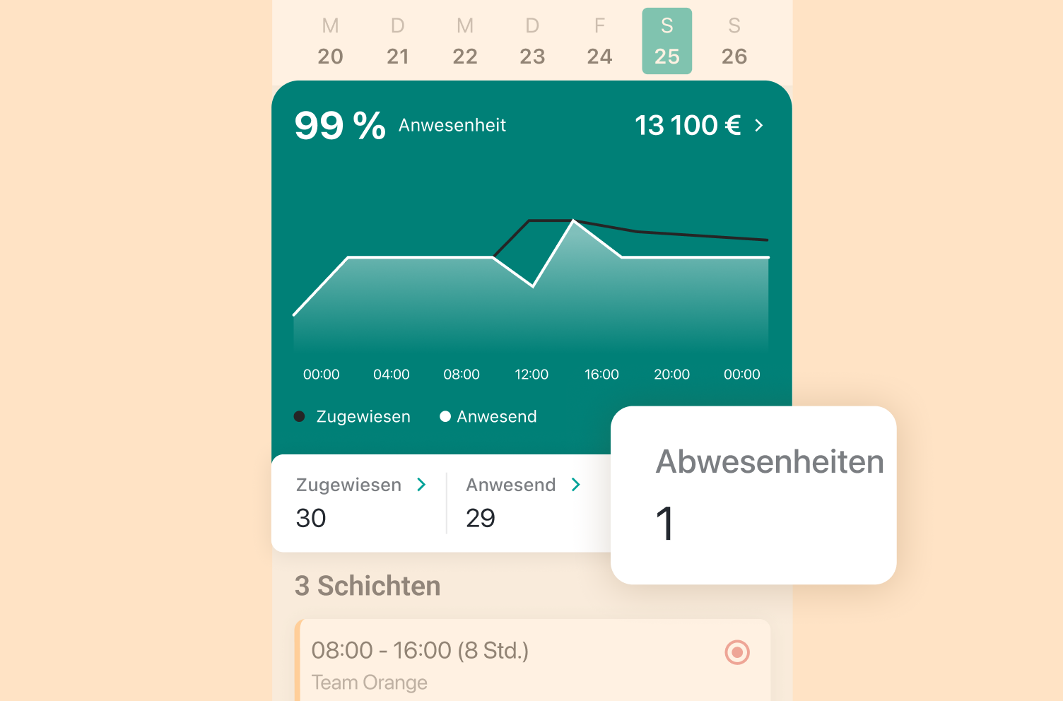 Sobald der Anruf endet, werden die Schicht-KPIs automatisch in der App aktualisiert. Sie sehen die Anwesenheit in Echtzeit und können schnell reagieren, um die Produktivität zu sichern.