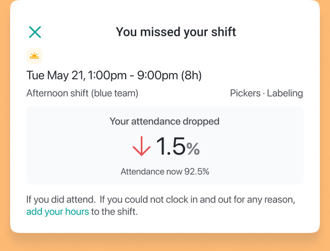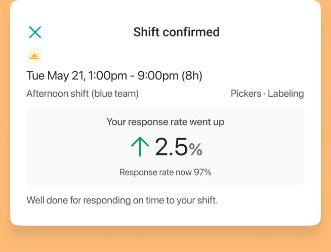 Wenn jemand die Schicht ablehnt, wird der Schichtleiter sofort benachrichtigt und kann die Schicht jemand anderem zuteilen.