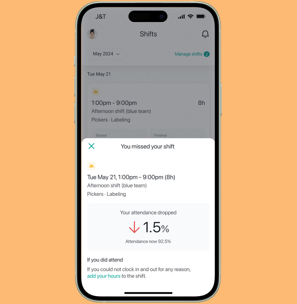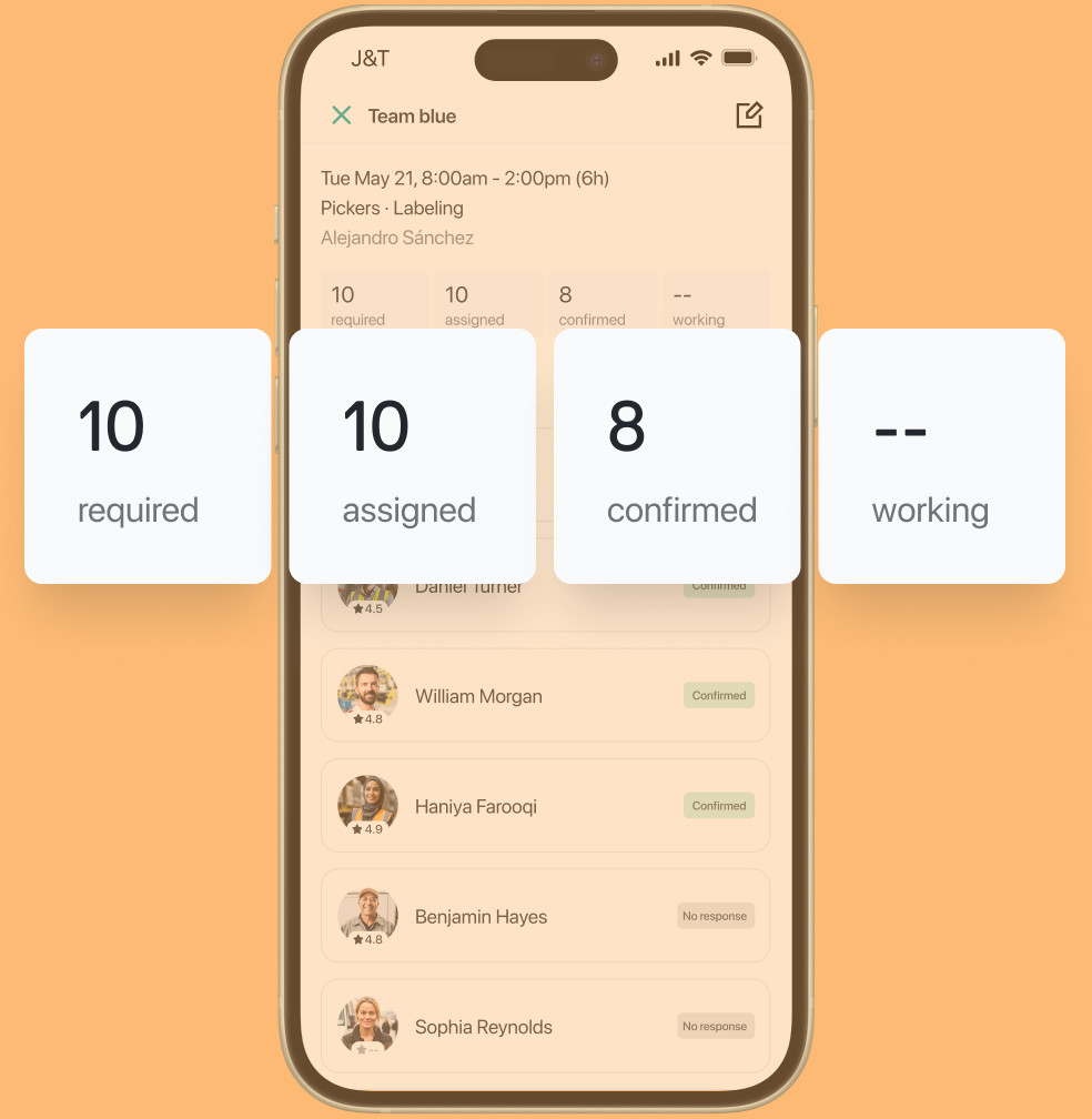 Mit der Job&Talent Business-App erhalten Sie aktuelle und genaue Anwesenheitsdaten. Mit Echtzeitdaten in der Hand können Sie schnell reagieren, um die Produktivität zu maximieren und die Kosten in jeder Schicht zu senken.