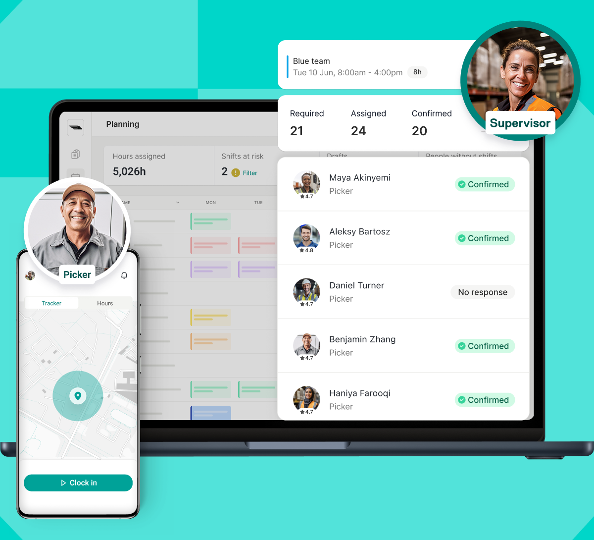 Erhalten Sie Zugang zu unserer technischen Plattform als Teil unseres Vor-Ort-Service. Die Plattform besteht aus zwei Apps, einer für Unternehmen, die mit einer anderen für Arbeitnehmer synchronisiert wird - eine leistungsstarke Kombination, die die Zuverlässigkeit und Qualität Ihrer Arbeitskräfte erhöht.